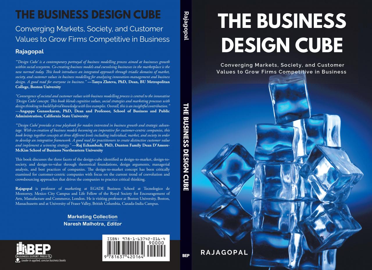 Rajagopal (2021). The Design Cube: Converging Markets, Society, and Customer Values to Grow Competitive in Business. New York: Business Expert Press. ISBN 13: 978-1-63742-016-4
