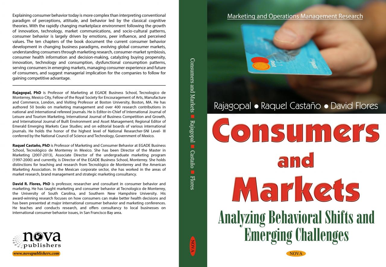 Rajagopal, Raquel Castano, and David Flores (2016), Consumer and Markets: Analyzing Behavioral Shifts and Emerging Challenges, Nova Publishers, Hauppauge, New York ISBN: 978-1-63485-122-0 See Book Review