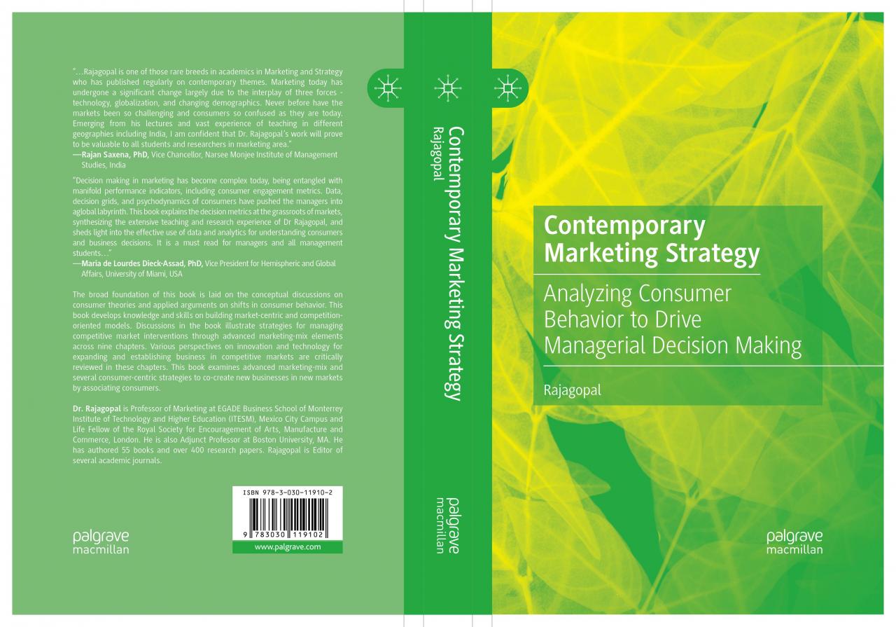 Rajagopal (2019), Contemporary Marketing Strategy: Analyzing Consumer Behavior to Drive Managerial Decision Making, Palgrave Macmillan, New York.